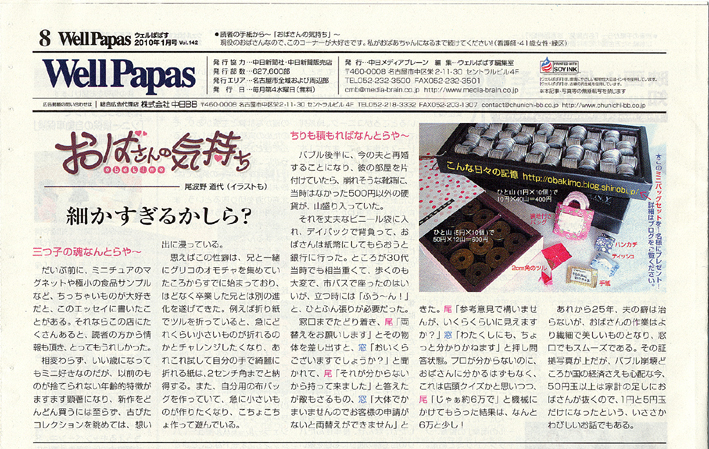 尾波野道代のエッセイ「おばさんの気持ち」は、ウェルパパスの休刊により、終了しました。今後はこのblogで、「気持ち」を発信します。