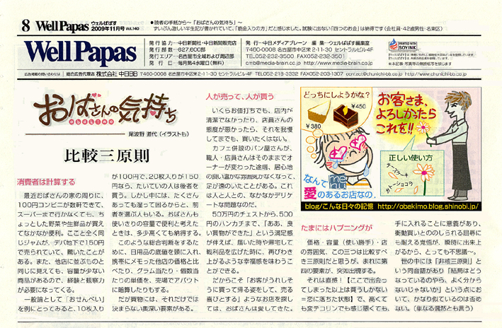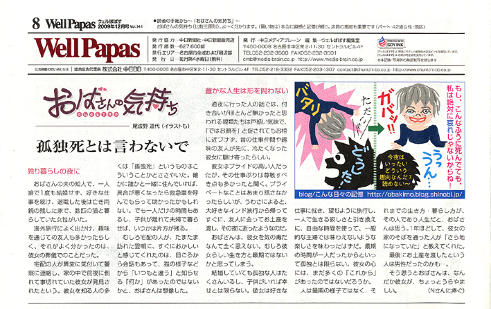 尾波野道代のエッセイ「おばさんの気持ち」は、ウェルパパスの休刊により、終了しました。今後はこのblogで、「気持ち」を発信します。